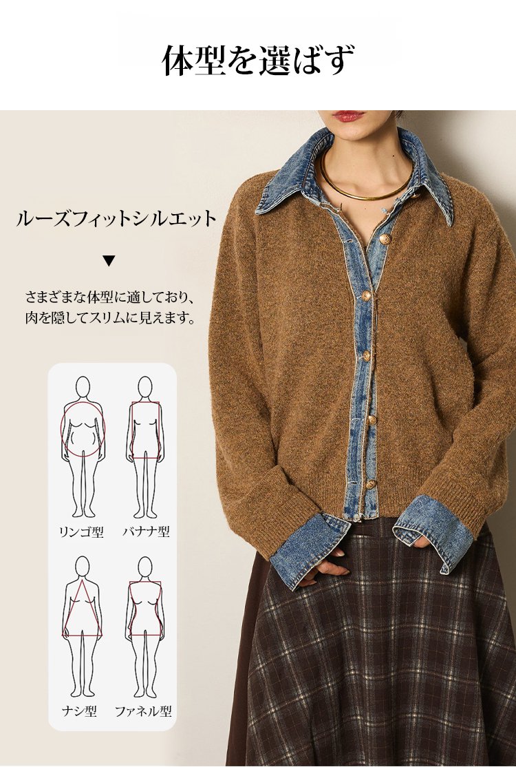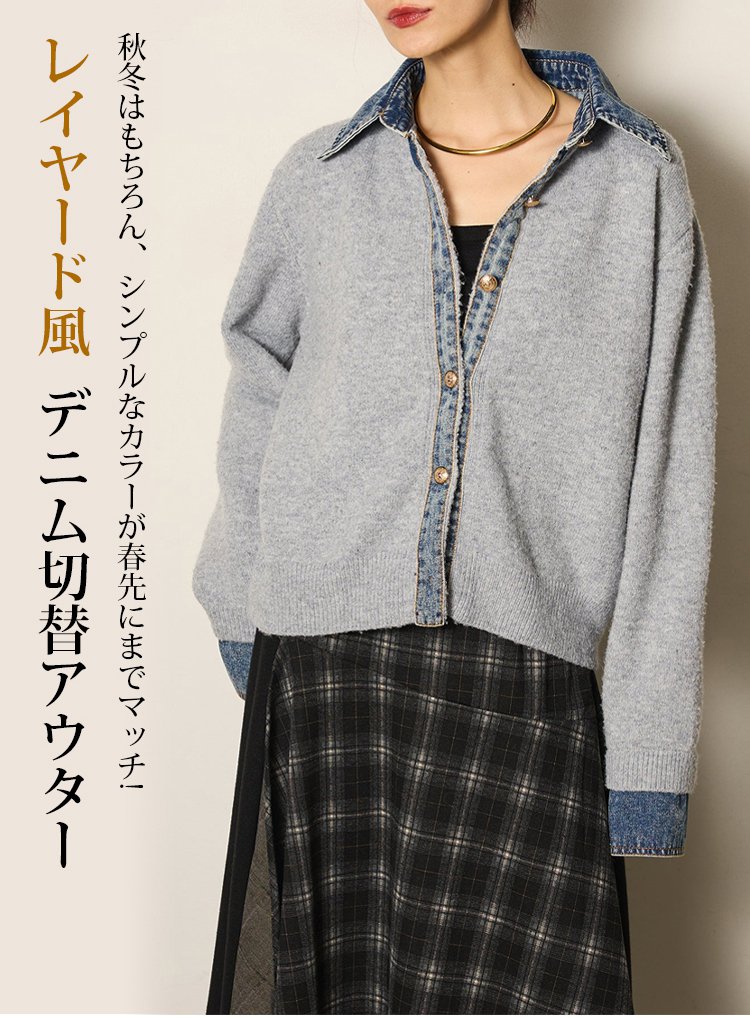 ☀️デニム×ニットの異素材MIX。テクニック不要で大人の高級感とこなれ感を演出します。